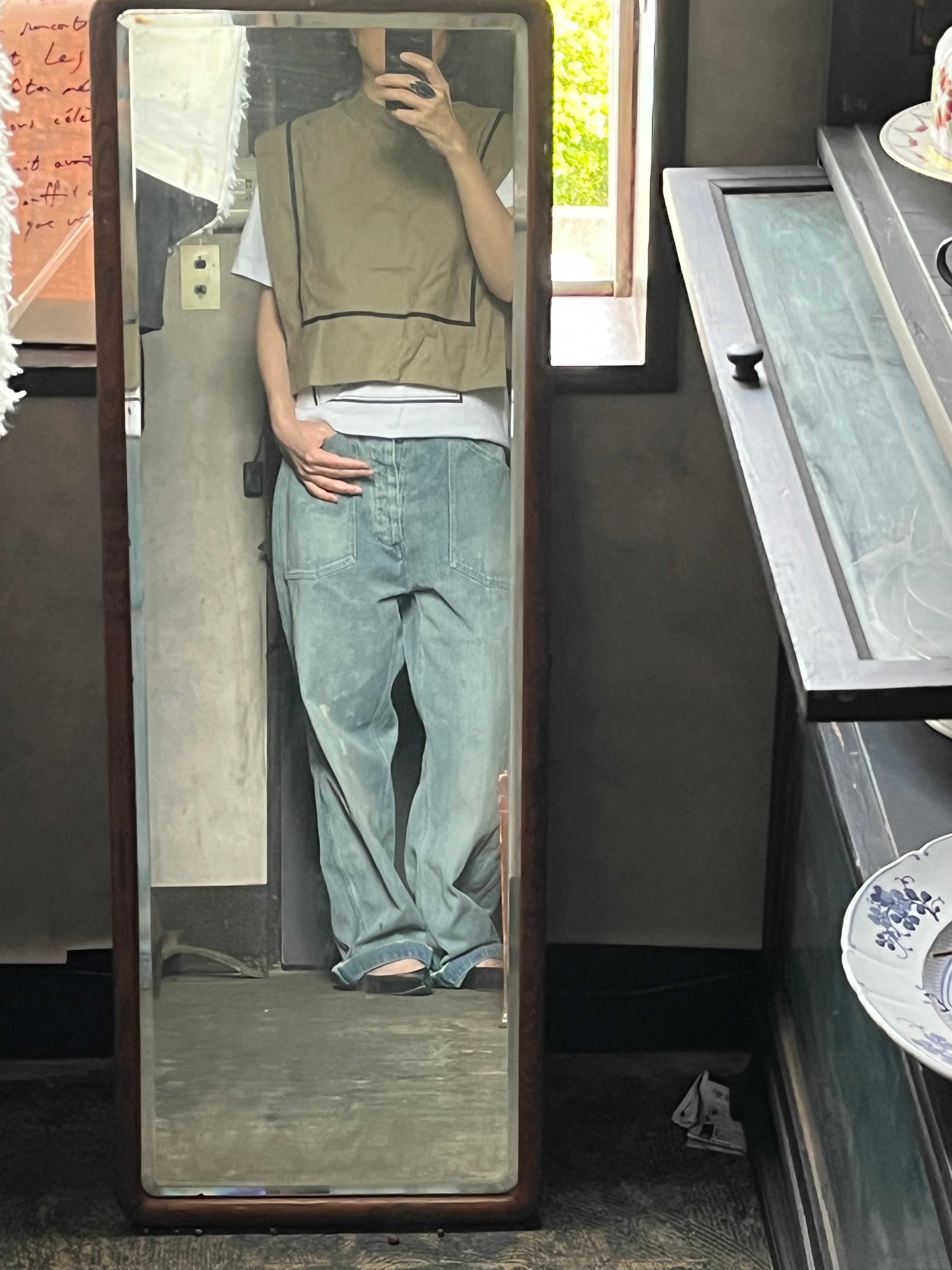 トップスがコンパクトにまとまる視覚効果もありそうです。
