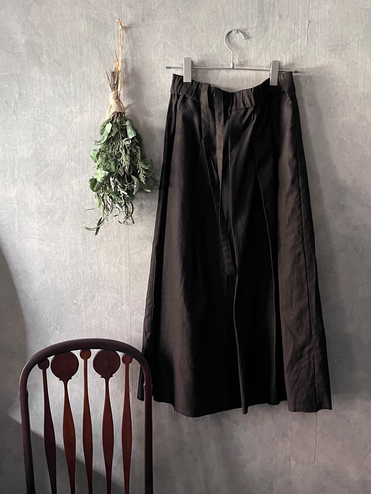 裾はあえて切りっぱなしにして、