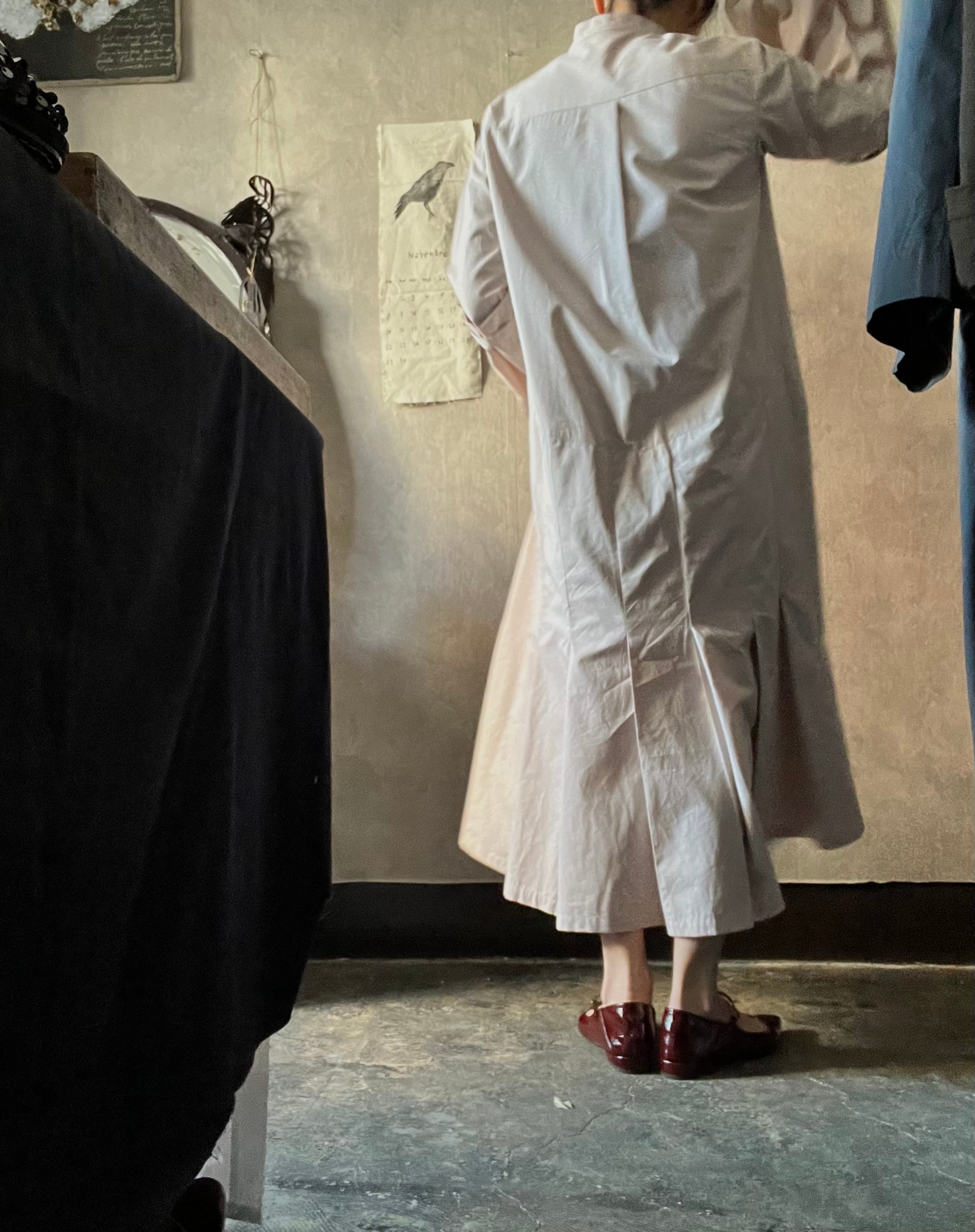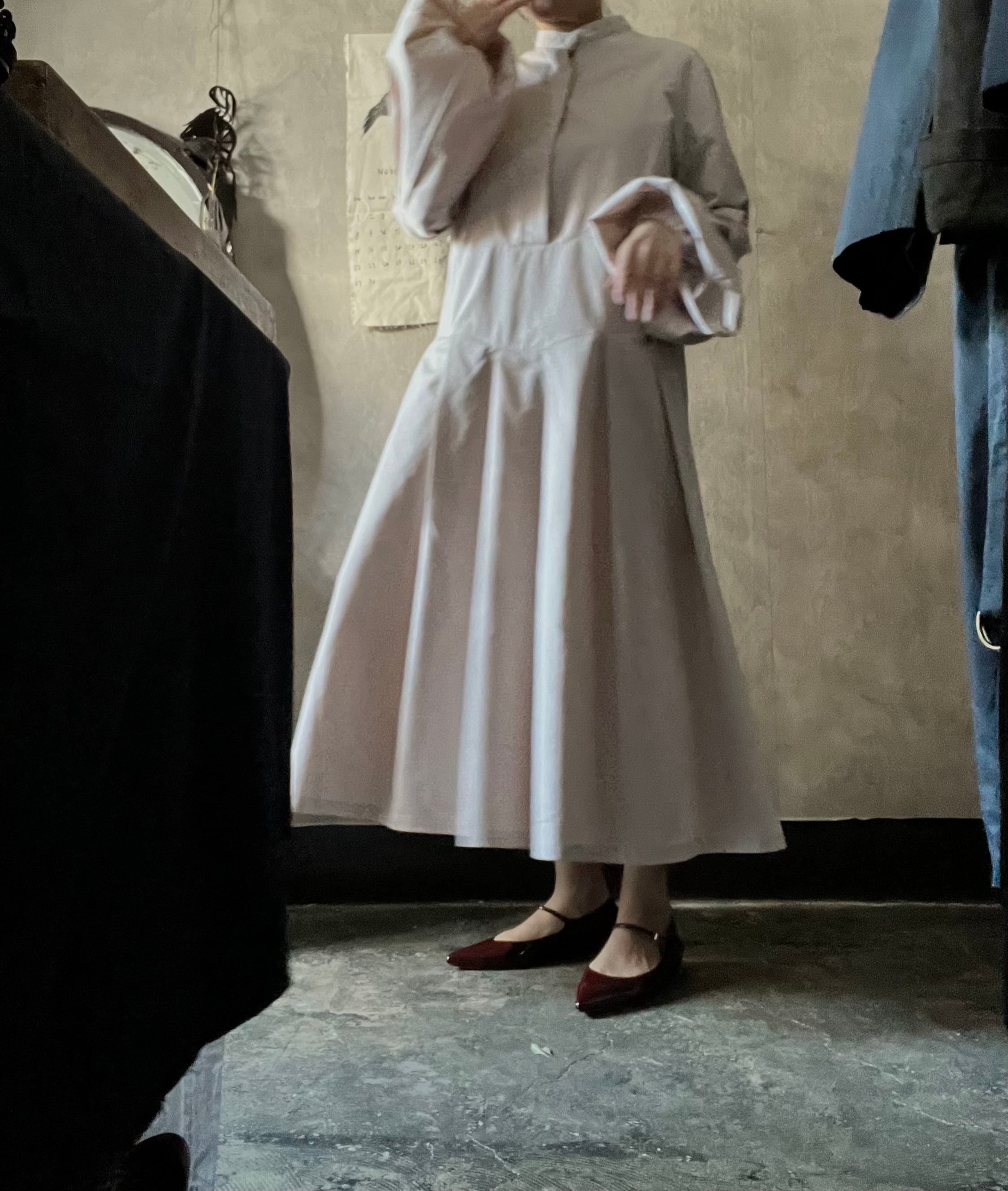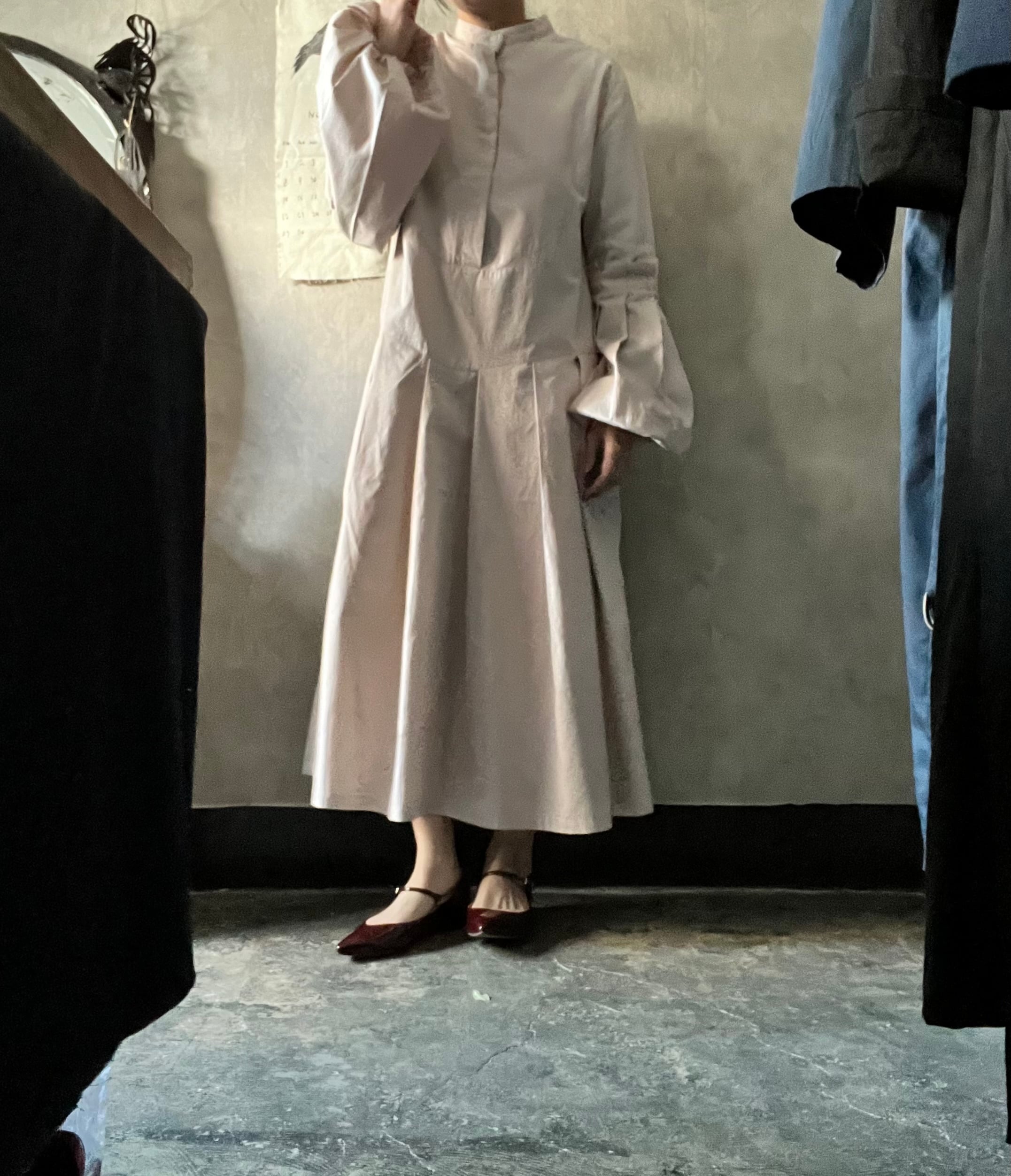スモーキーピンクのワンピース。