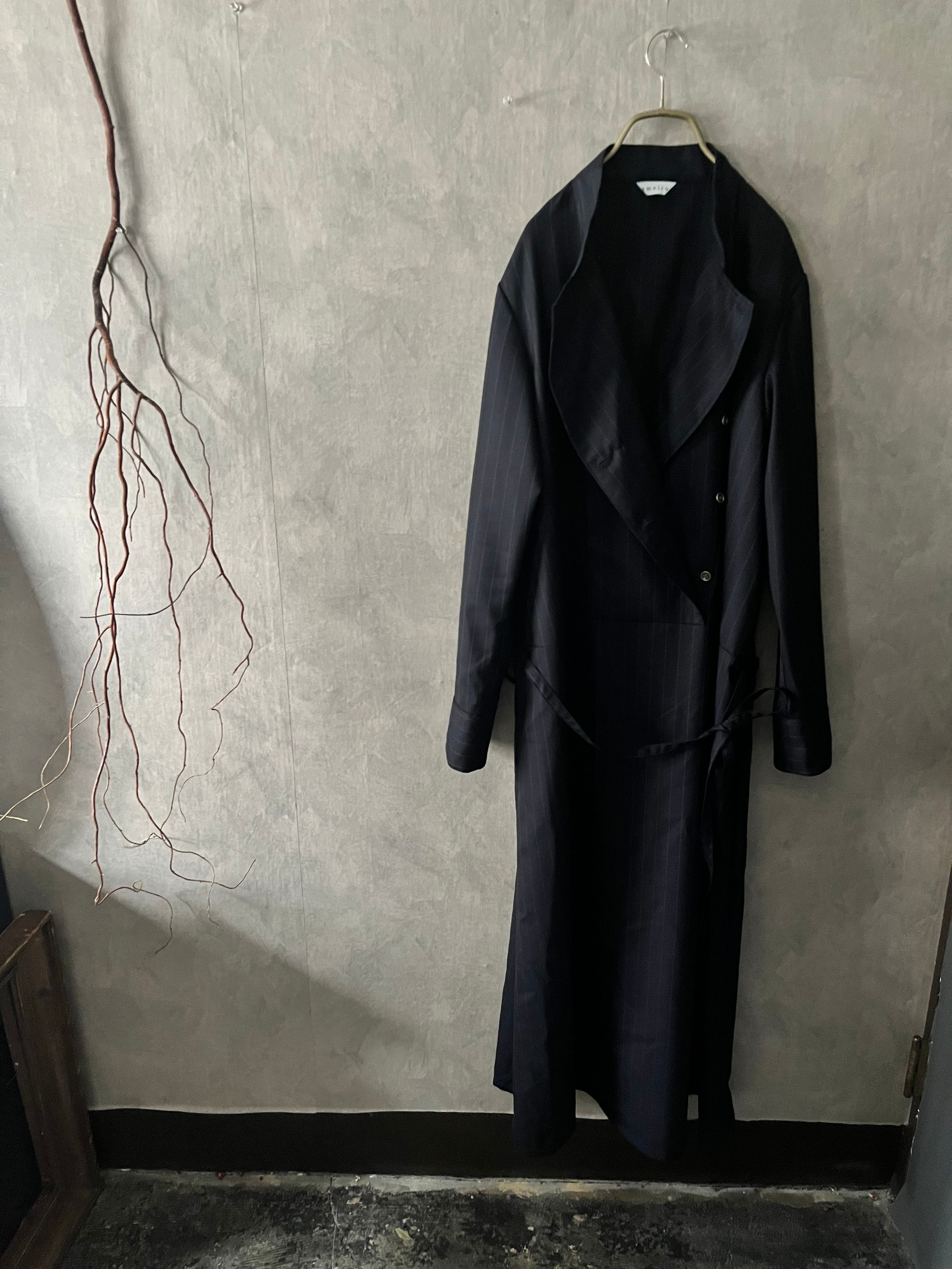 iラインのマキシドレス:ダークネイビー&ピンストライプ