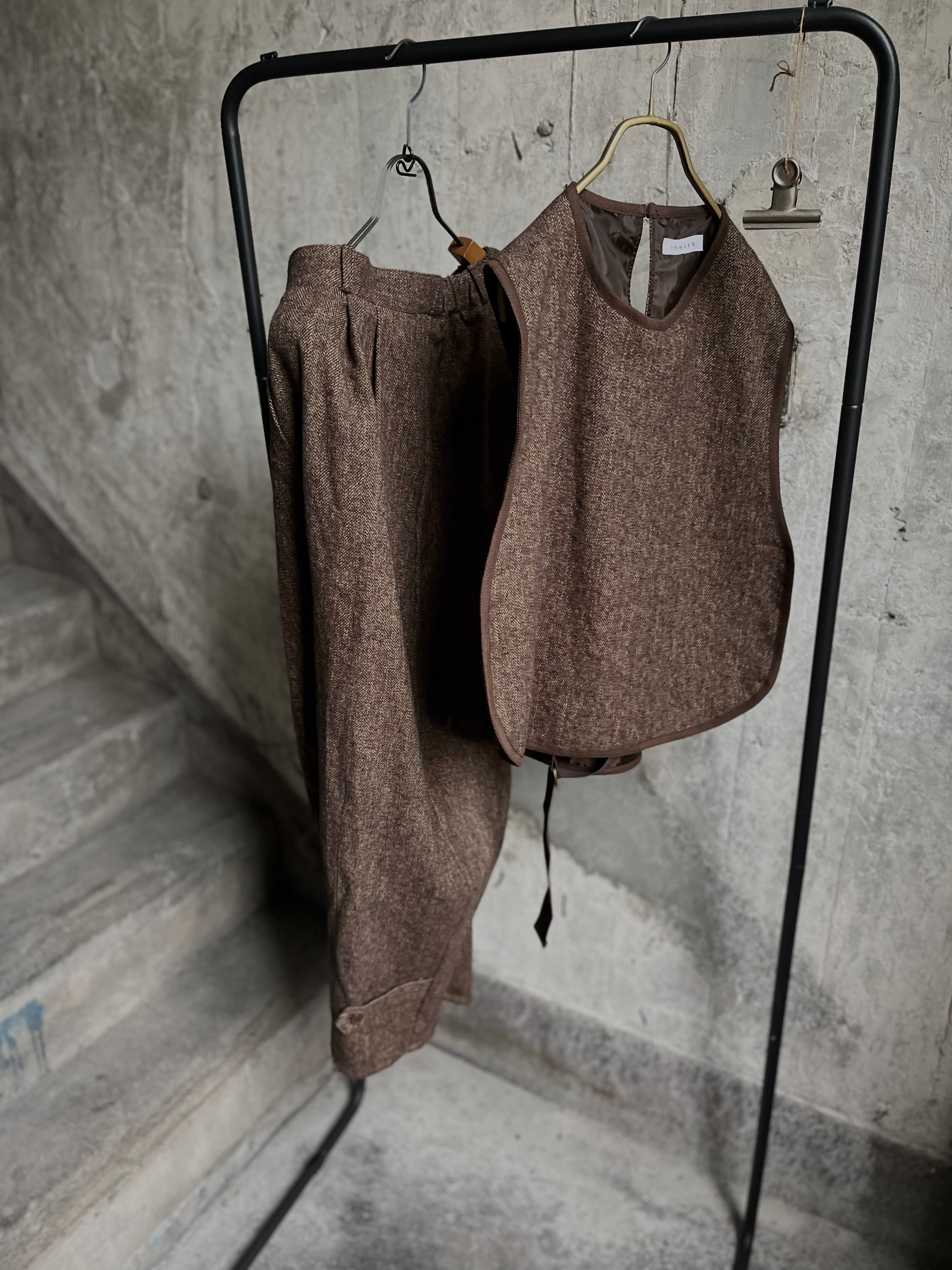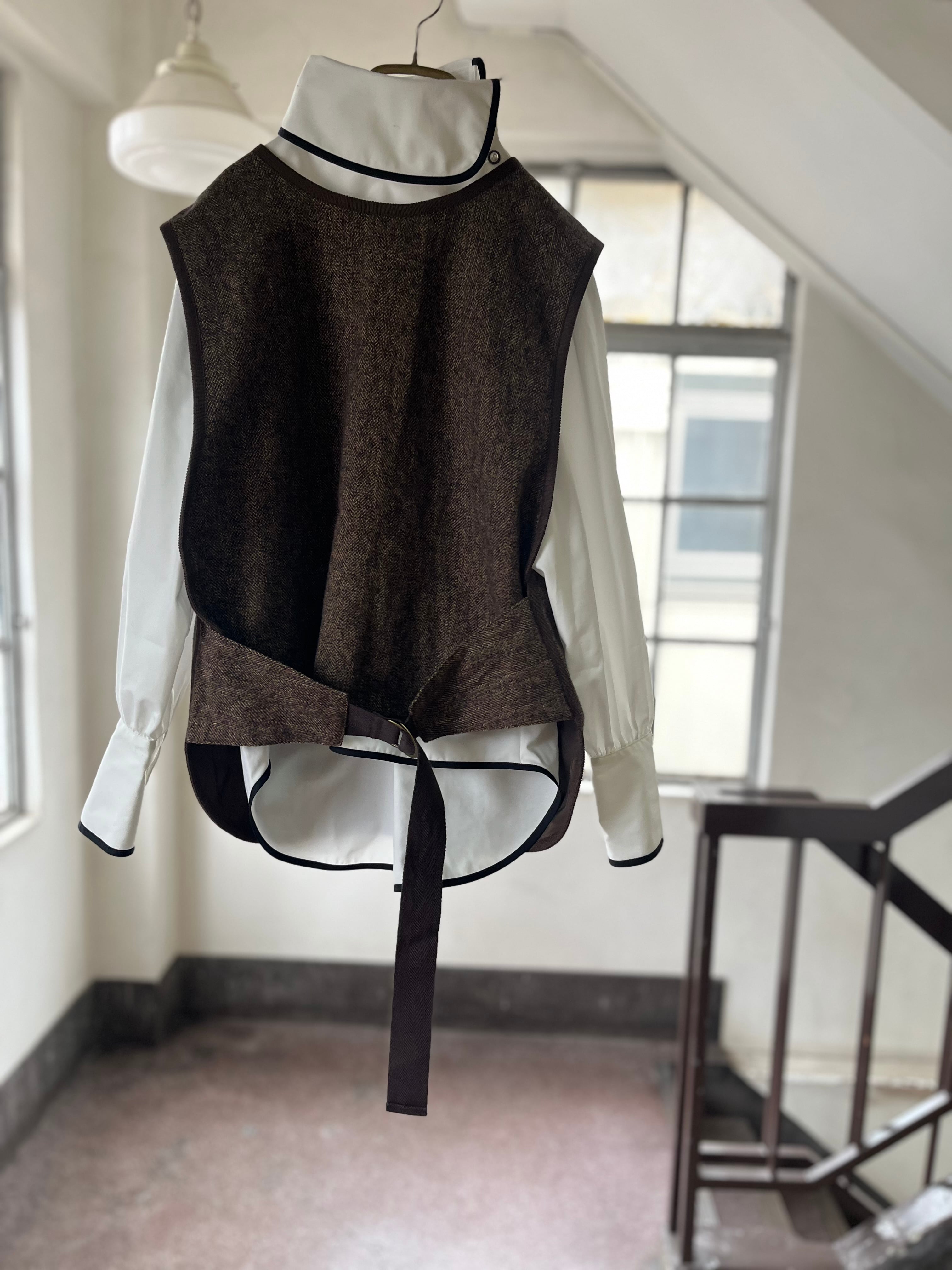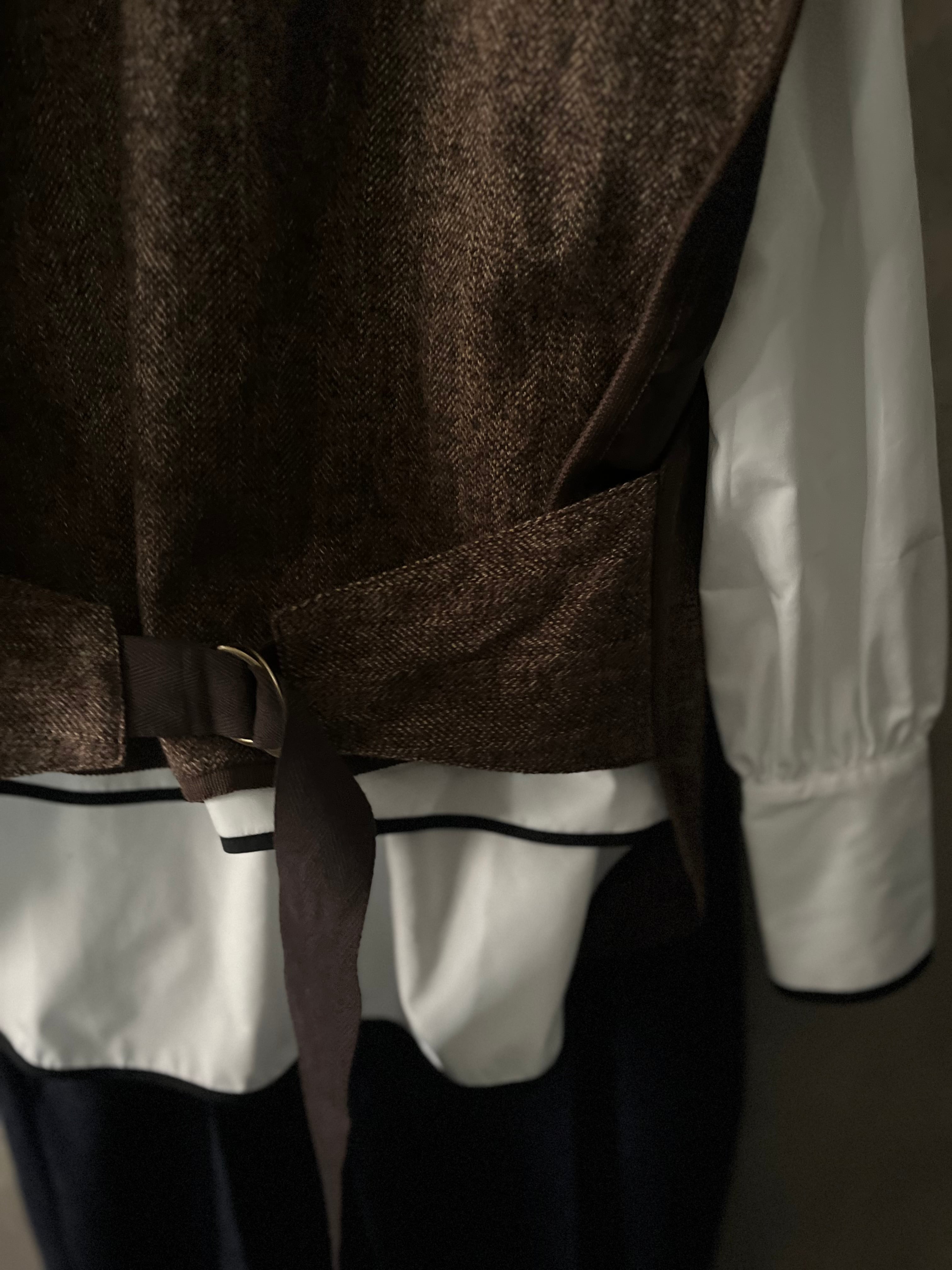 コットンツイードのベルトベストです。