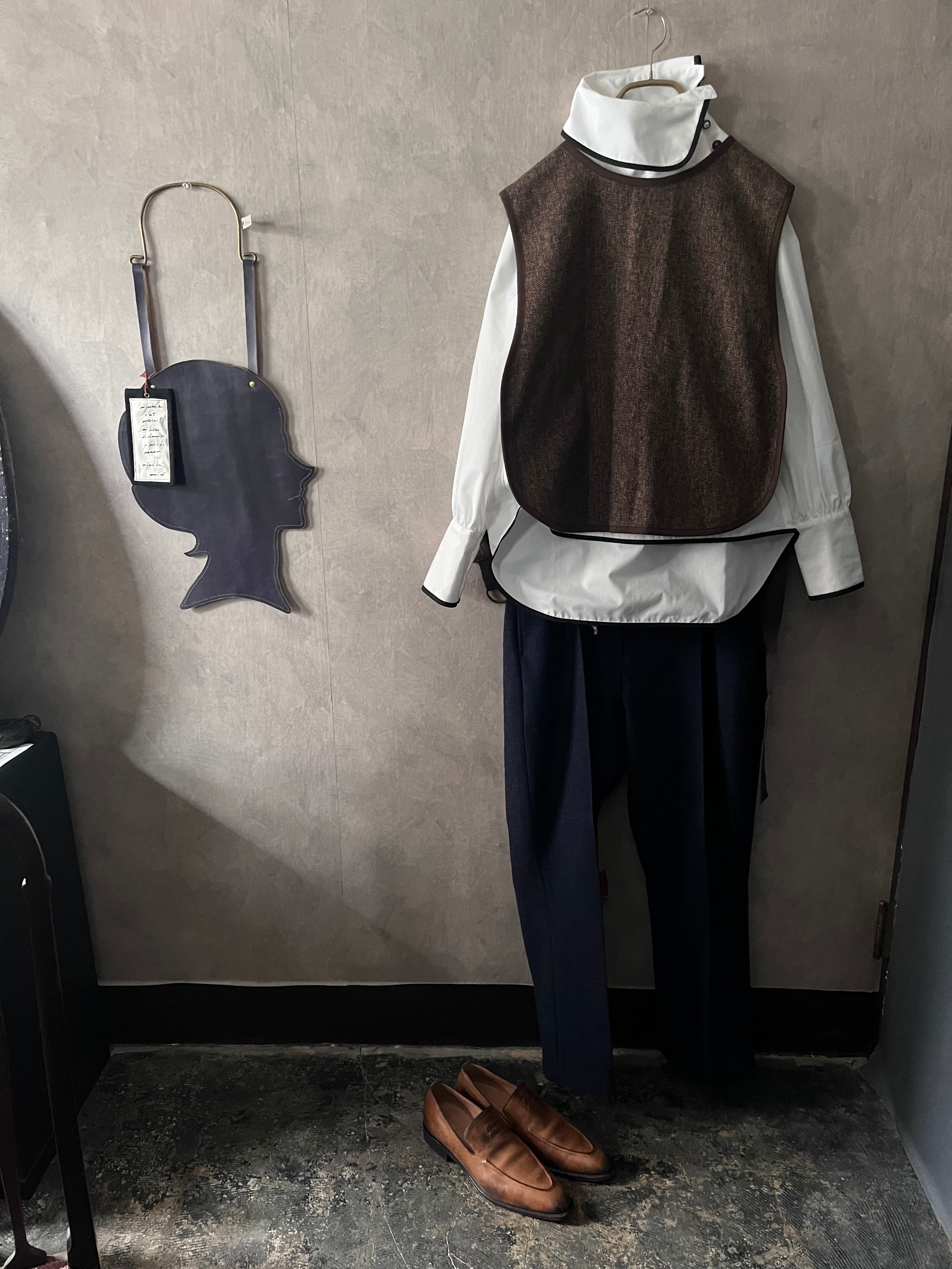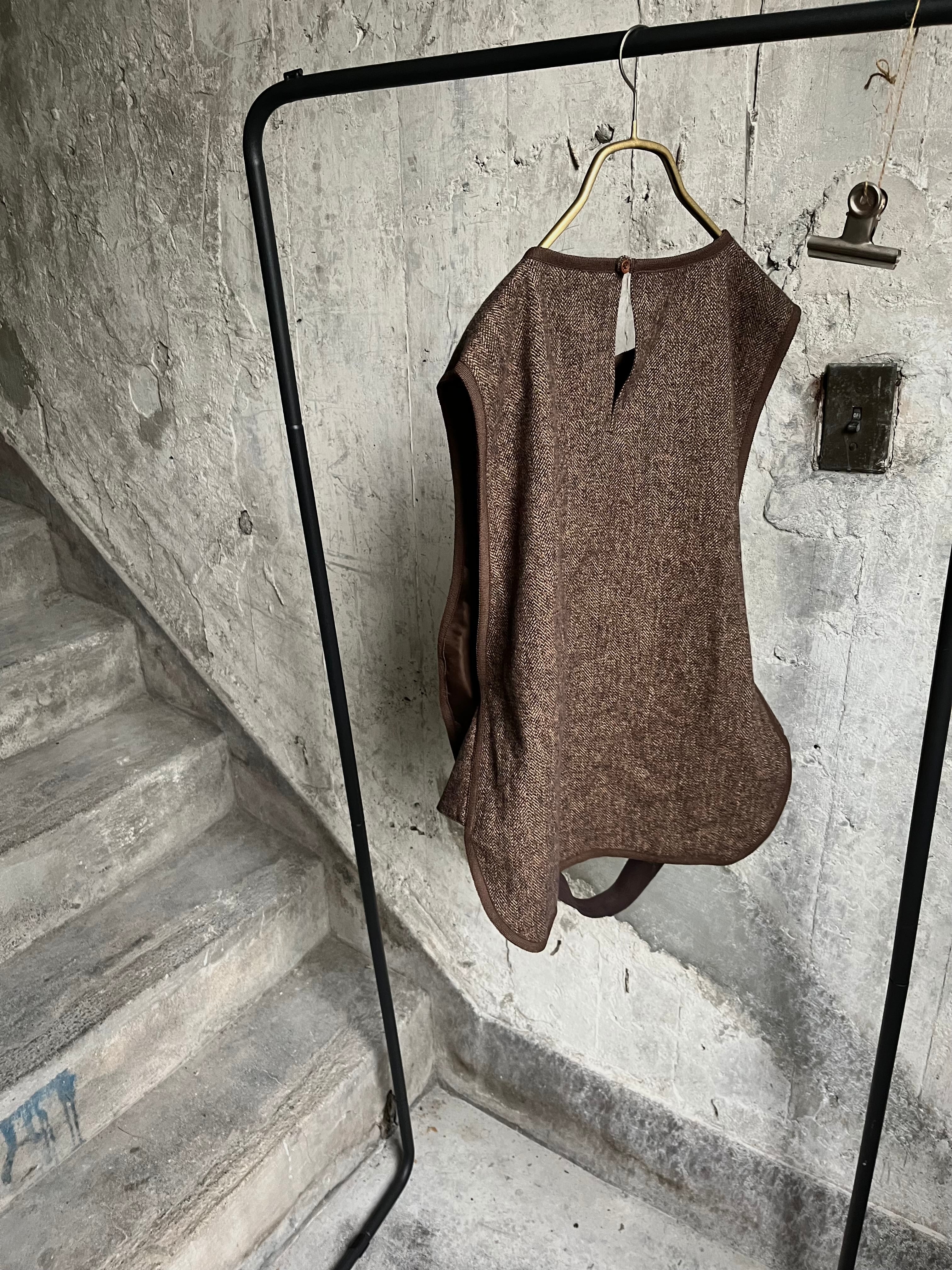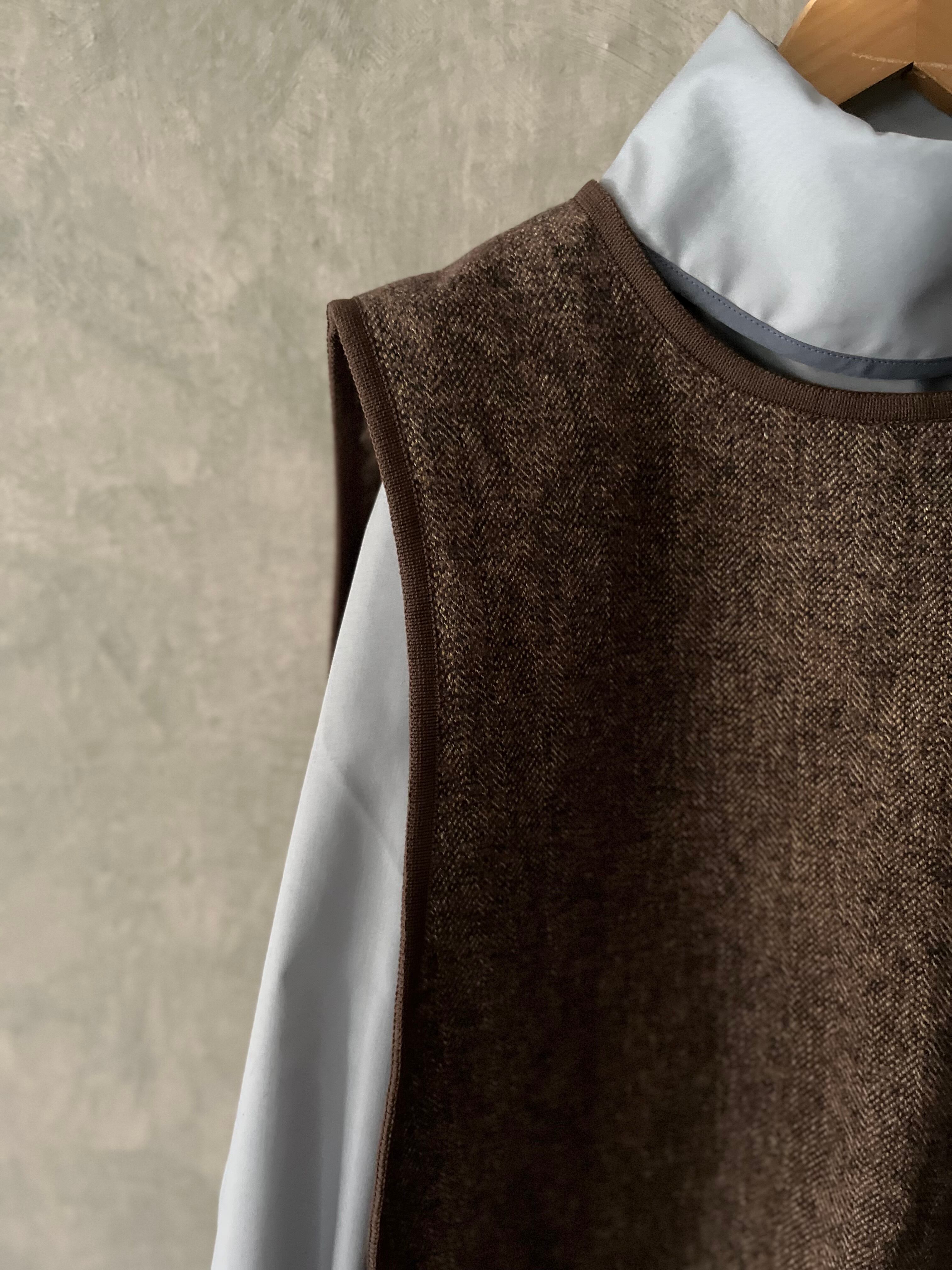コットンツイードのベルトベストです。